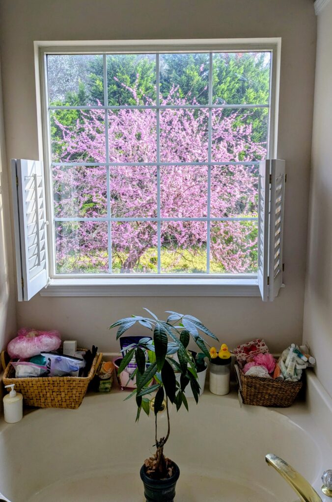 This morning, I’ve woken up to the bright and beautiful sight of our Eastern Redbud (Cercis canadensis) in full bloom and clearly “a-buzzing” with bees. Wish I can jump right out there in my PJs. This is the best time in Spring when everything is waking up… spring bulbs, grasses, frogs (now visiting our patio glass doors) and of course, bugs galore.